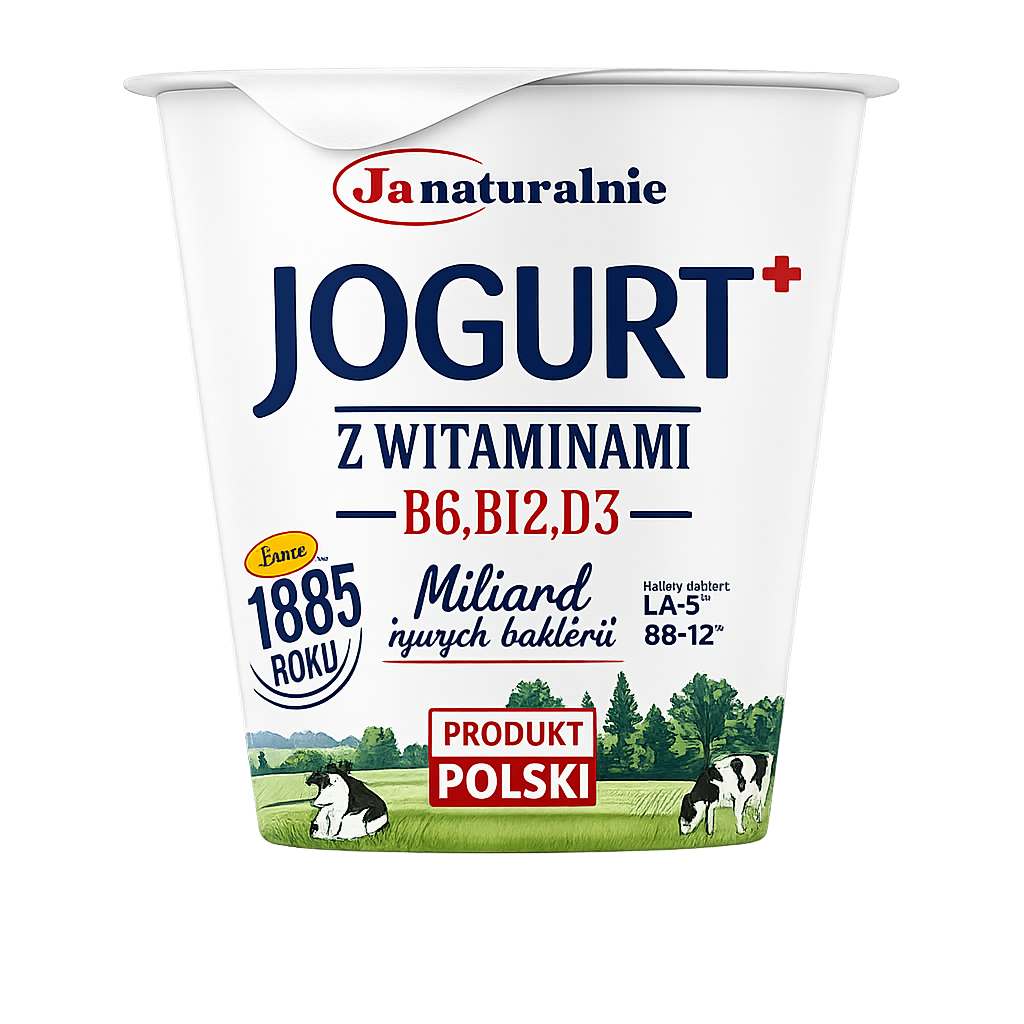 Janaturalnie – это классический натуральный йогурт из польской молочной линейки Jana. Основа простая: молоко и закваска. В составе нет сахара, ароматизаторов и загустителей. Вкус формируется только ферментацией.