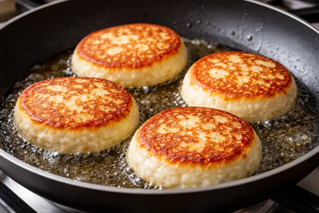 - Жарьте оладьи с обеих сторон до золотистого цвета.