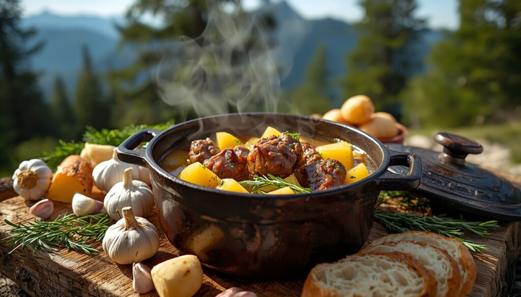 Чесночный суп с бараниной относится к тем блюдам польской кухни, которые формировались не в городских трактирах, а в условиях горных регионов юга страны – прежде всего в Подхале, на пограничье Малопольши и Татр. Здесь кухня всегда была подчинена климату, физическому труду и доступным продуктам. Баранина, чеснок, корнеплоды и хлеб составляли основу повседневного рациона пастухов и горцев, а супы служили не закуской, а полноценным приёмом пищи.