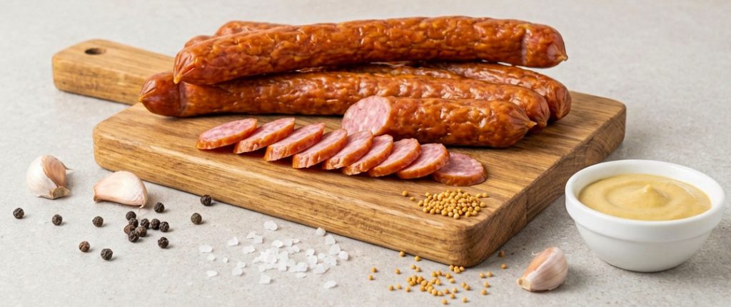 - Это польская базовая версия салата с kabanos – без семечек и без сладких добавок.