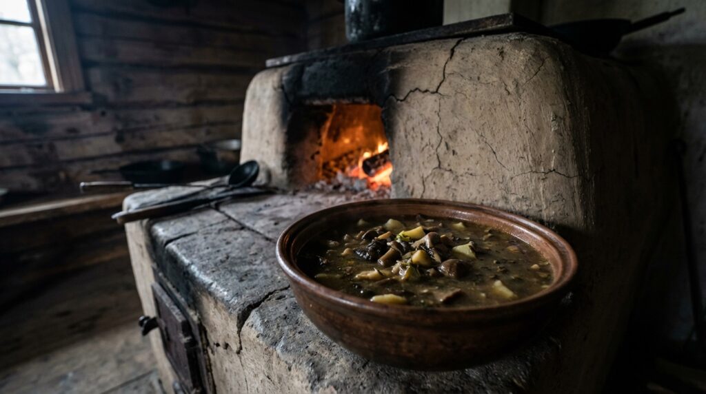 Такие супы до сих пор готовят в подлясских домах как сезонное блюдо, связанное с лесом, сбором грибов и домашними заготовками. Это живая региональная кухня, не музейная и не стилизованная, а функциональная, понятная и очень честная.